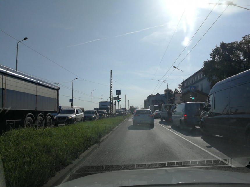 Sastrēgums ir tik ievērojams, ka daži autovadītāji šķietami nelielajā ceļa posmā aizvadījuši pat stundu.