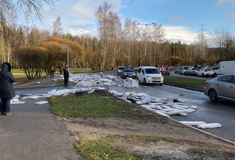 Saldētās zivis izbirušas, braucot virzienā uz Zolitūdi, līdz ar to prospektā ir slēgta viena no divām braukšanas joslām.