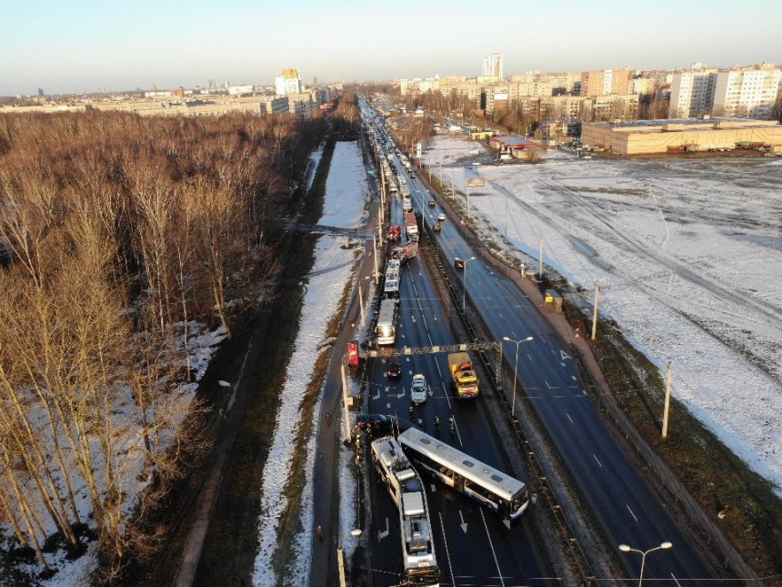 Ugunsdzēsēji glābēji pārvieto avarējušos transportlīdzekļus, lai atbrīvotu satiskmi. Viena josla jau atbrīvota. pic.twitter.com/gSfQKfVhRw