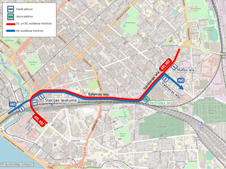 No 1. aprīļa 51., 52. un 63. autobusa maršrutā tiks ieviesta jauna pieturvieta “Ģertrūdes iela”.