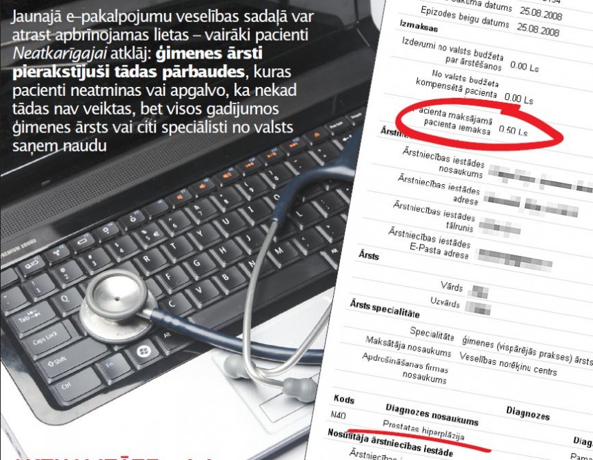 Jaunajā e–pakalpojumu veselības sadaļā var atrast apbrīnojamas lietas – vairāki pacienti Neatkarīgajai atklāj: ģimenes ārsti pierakstījuši tādas pārbaudes, kuras pacienti neatminas vai apgalvo, ka nekad tādas nav veiktas, bet visos gadījumos ģimenes ārsts vai citi speciālisti no valsts saņem naudu.