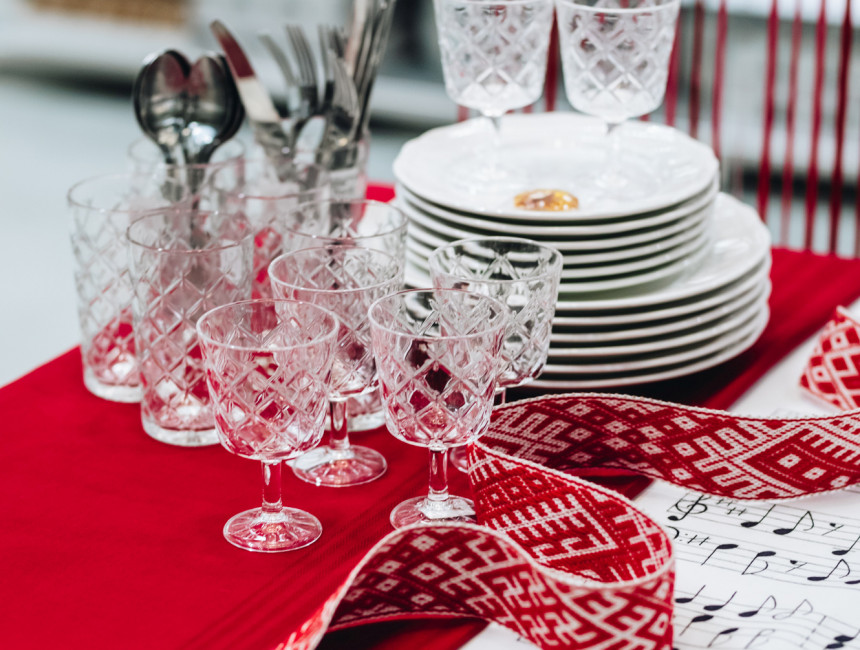 4. Dodies dārgumu medībās. Interesantas lietas var atrast gan veikalā, gan dabā, gan vecmāmiņas bufetē. Dziesmu svētku dalībnieki galda rotājumā var izmantot nošu lapas un tautastērpa elementus - prievītes, Lielvārdes jostu vai saktas. Ja esi dabas mīļotājs, rotā galdu ar dažādiem augiem un dabas veltēm - vāzēs kārto melleņu mētras, stikla traukos saliec zīles vai riekstus, veido uz galda ornamentus no smilgām.