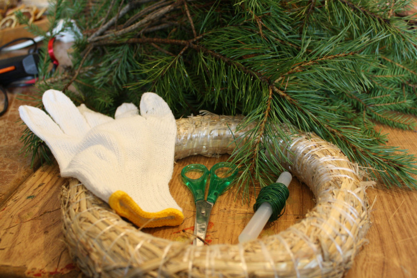 5. Sagatavojiet skujeņus. Adventes vainagu var veidot ne tikai no egļu, bet arī no priežu, kadiķu, sudrabegles, īves zariem. Īpaši grezni izskatīsies, ja pamīšus miksēsiet dažādu koka sugu skujiņas, taču tas prasīs lielāku pacietību un arī meistarību. Neceriet, ka jums uzreiz izdosies perfektais vainags! Tieši tādēļ sagatavojiet krietnu klēpi zaru, jo, pirmo reizi ķeroties klāt šādam darbiņam, "atgriezumos" aizies diezgan daudz materiāla.