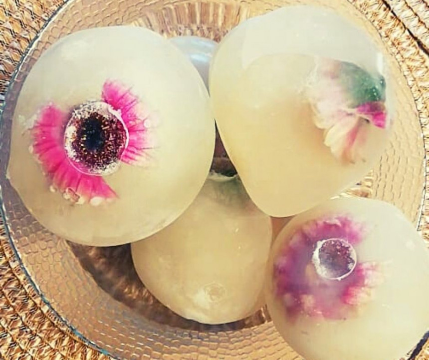 Gaidot siltāku laiku un pirmos dārza svētkus, nolēmu izmēģināt veidu, kā izveidot ledus bumbas ar ziediem dzērienu atdzesēšanai.