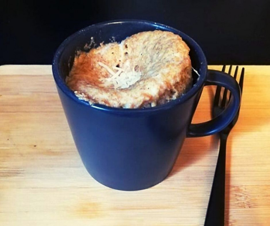 Tad krūzes sastāvam pievieno vienu olu, nedaudz piena (arī tika liets uz izjūtām) un tējkaroti eļļas (eksperimentā izmantota olīveļļa).
