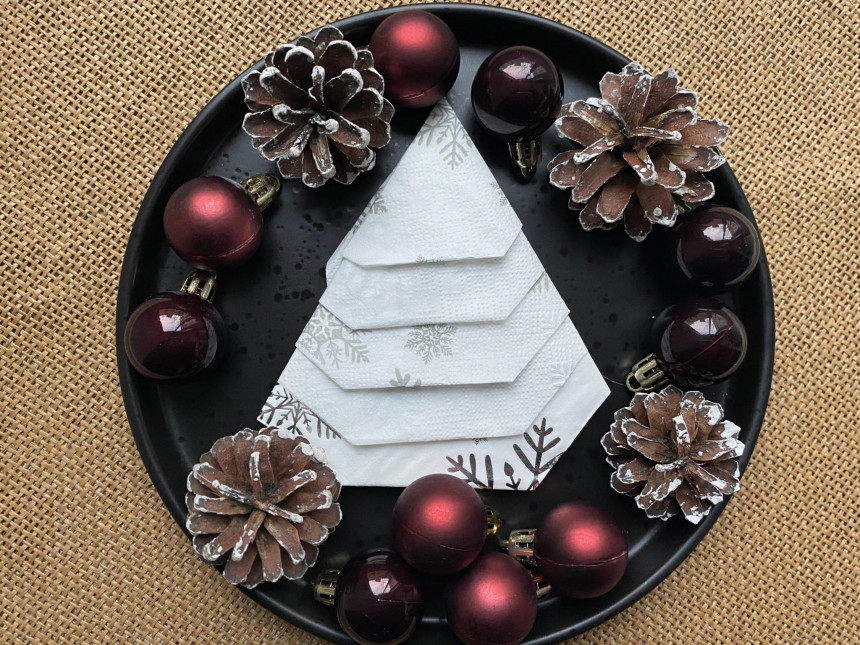 Šogad nolēmu uz svētkiem iemācīties, kā no salvetes salocīt Ziemassvētku eglīti.