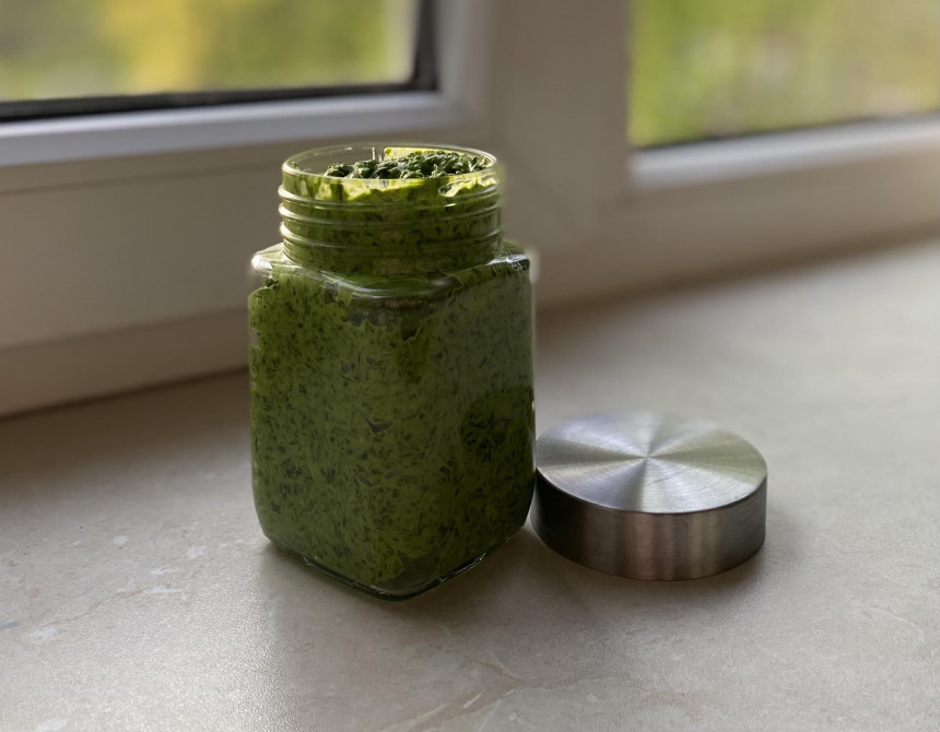 Pēc tam atliek vien pesto pildīt burciņā un to notiesāt.