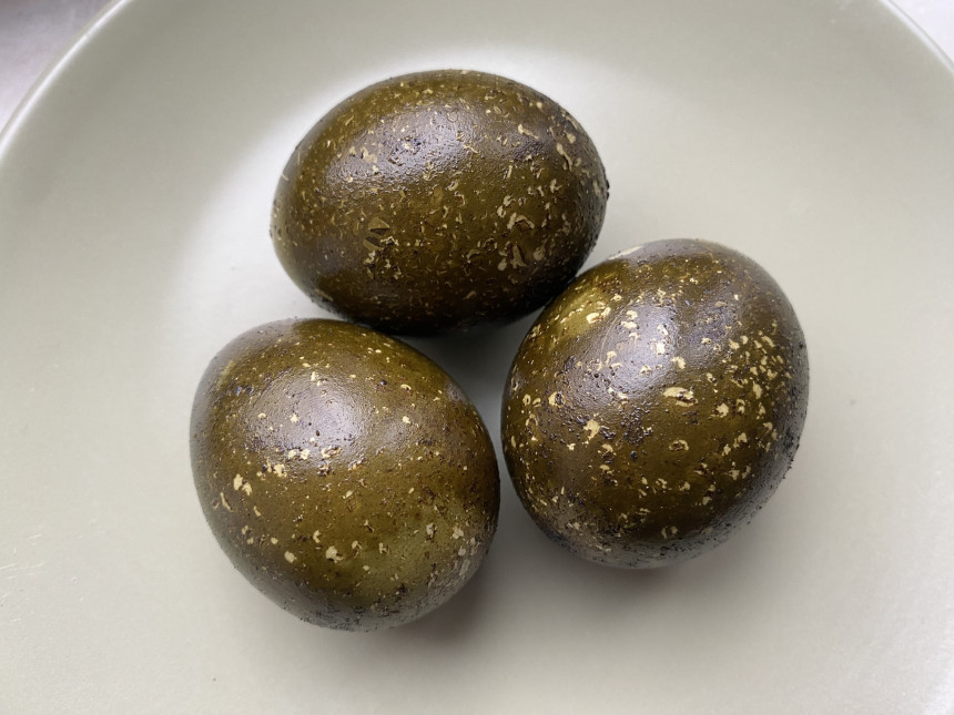 Olas šķidrumā vari atstāt arī pa nakti, jo ilgāk olas atstāsi katliņā, jo tumšākas tās kļūs. Kad esi ieguvis vēlamo krāsu, olas izņem no katliņa un noliec uz šķīvja vai dēlīša, lai tās pašas nožūst.