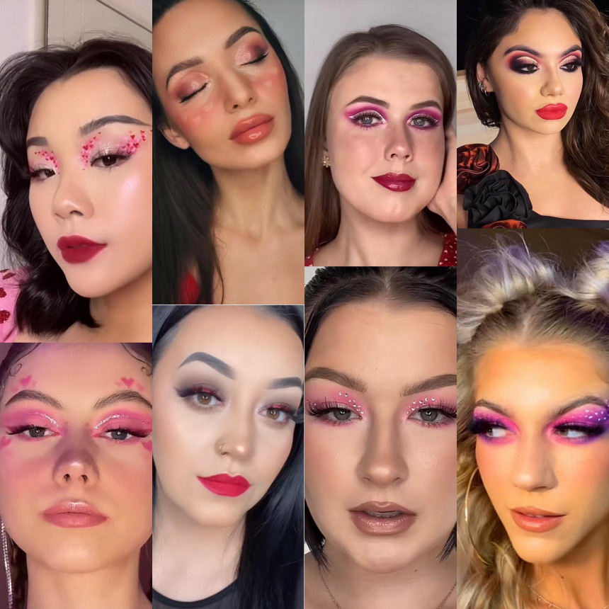 Valentīndienai piestāv rotaļīgs grims - spilgti toņi, spīdumiņi, zīmējumi, nospiedumi. Vienmēr aktuāls ir arī liktenīgās sievietes tēls - dūmakainās acis un sarkana lūpu krāsa.