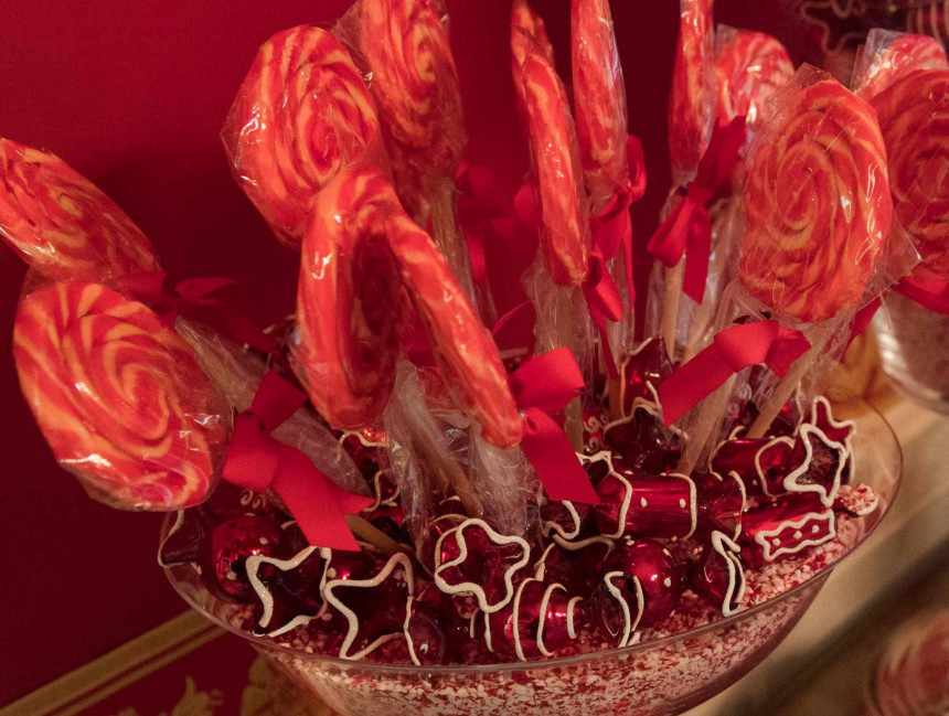 2.solis. Kad konfektes piestiprinātas, apkārt tām sien sarkanās krāsas lentīti.