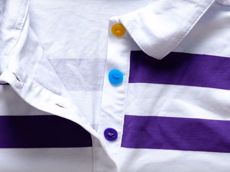 Tagad atliek vien piešūt jaunizveidotās pogas kreklam vai džemperim. Šis ir lielisks veids kā otrreiz izmantot nevajadzīgos plastmasas salmiņus, kas apdraud vidi.