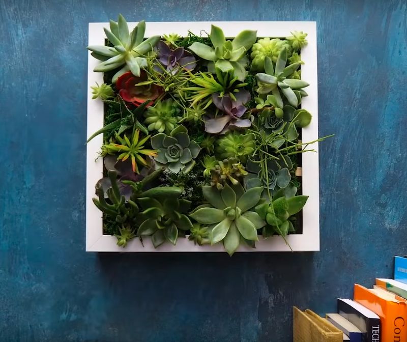 Kad viss gatavs, rāmi droši kar pie sienas vai stāvus novieto uz galda. Šāda "dzīva glezna" atsvaidzinās interjeru un radīs patiesi unikālu iespaidu. Turpmāk augus vari apsmidzināt ar ūdeni, izmantojot pudeli ar smidzināšanai paredzētu uzgali.