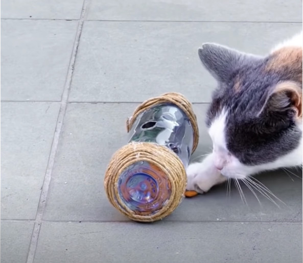 Šāda rotaļļieta var noderēt ne tikai kaķiem, bet arī suņiem. Ja vēlies, ko šādu izveidot sunim, tad, iespējams, būs nepieciešama lielāka pudele.