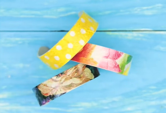Noklāj koka lāpstiņu ar PVA līmi, uzklāj izgriezto salvetes gabaliņu, pielīmē to klāt. Lai labāk salvete turētos un rokassprādze būtu spīdīga, PVA līmi pārklāj pāri arī salvetes virspusei.