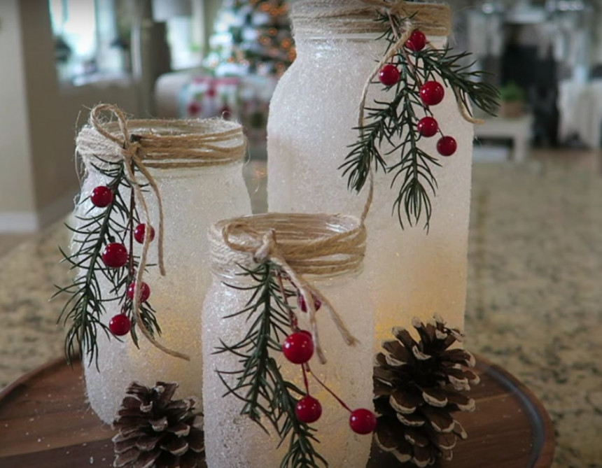 Ar karstās līmes palīdzību burkas augšdaļā piestiprina džutas auklu. Pie auklas piesien vai ar līmi piestiprina izvēlētā koka zaru un ogas. Ja tas ir pīlādžogu zariņš, tad to kopā ar priedes vai egles zaru var piestiprināt piesienot. Ja izvēlētas dzērvenes, tās pie zara vai džutas auklas piestiprina ar līmi.