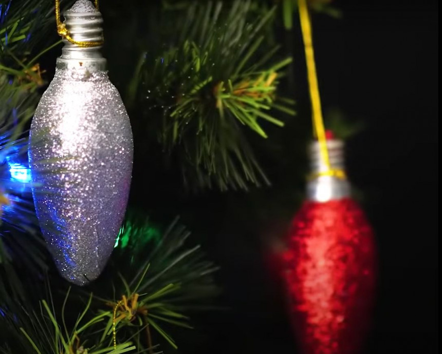 Nav bligāti jāsteidzas uz lielveikalu, lai atrastu vizuļojošus rotājumus Ziemassvētku eglītei- šajā gadījumā pietiks ar izdegušu spuldzi un nelielu parosīšanos.