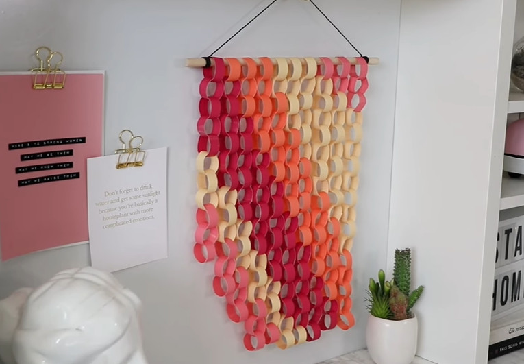 Atsvaidziniet savu interjeru un izveidojiet skaistu sienas dekoru. To iespējams pagatavot vien no krāsainā papīra, skoča, koka irbuļa, auklas un līmes!