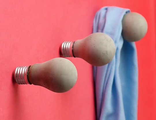 Izmantojiet izdegušās spuldzītes lietderīgi. Izveidojiet interesantu sienas dekoru, kas kalpos kā drēbju un citu lietu pakaramais!