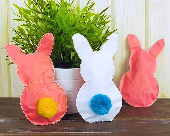 1. Uz kreppapīra/dāvanu papīra ar zīmuli uzzīmējiet divus vienāda izmēra zaķus.