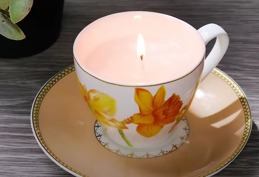 Uzmanīgi krūzē ielej izkusušo vasku un nogaida līdz tas sacietē.
