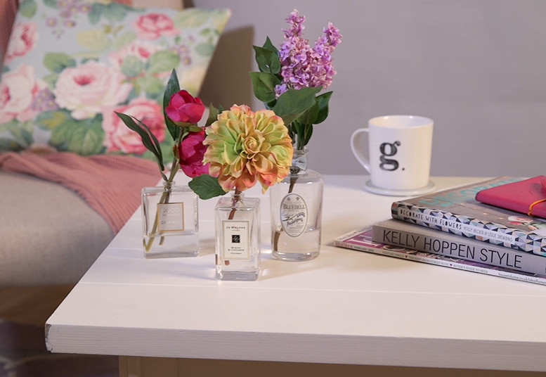 Liec lietā vecās smaržu pudelītes un izveido skaistu galda dekorāciju.