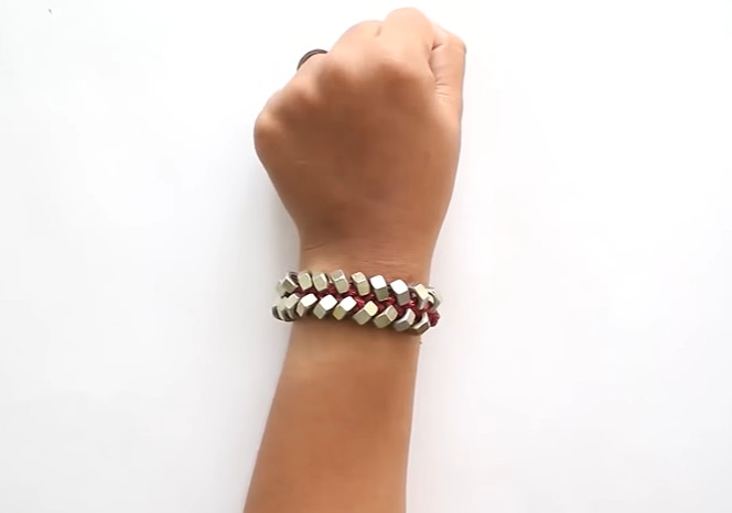 Izveidojiet unikālu rokassprādzi no dzijas pavedieniem un uzgriežņiem. Neprasti, interesanti, bet ļoti skaisti!