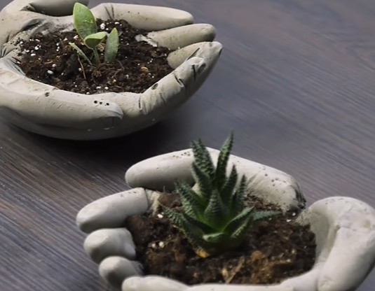 9. Stādiet augus! Varat stādīt katrā cimda formas puķu podā savu stādu. Vai arī ,saliekot abas formas kopā, stādīt vienu stādu!