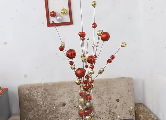 7. Ievietojiet izgreznoto stiepli vāzē, kurā iepriekš tika iebērti eglīšu rotājumi.