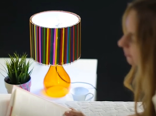 3. Atkārto pirmos divus soļus tik ilgi līdz viss lampas abažūrs ir noklāts ar zīmuļiem.