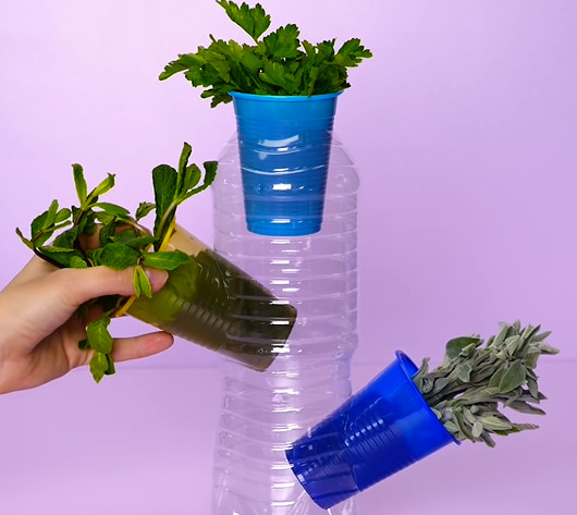 Izveidojiet praktisku garšaugu statīvu no plastmasas pudeles!