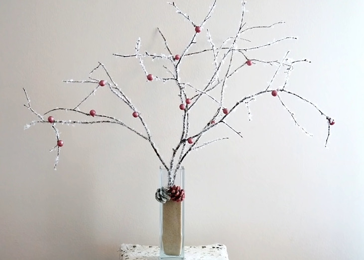 6. Ja vēlaties, tad pašās beigās sniegoto zaru varat izdekorēt ar dažādām dekorācijām, piemērām, nelielām bumbiņām.