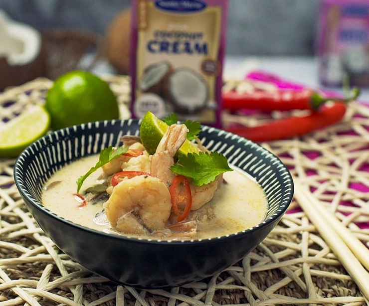 Ātri pagatavojams eksotisks taizemiešu ēdiens jūsu virtuvē? Lūk, pikantas Tom Kha zupas recepte ar garnelēm un kokosriekstu pienu. Patiešām ļoti gardi!