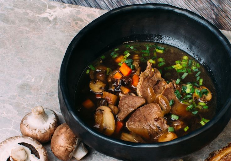 Klāt zupai liek sojas mērci, zaļumus pēc vēlēšanās un sāli pēc garšas. Klāt, protams, liekam svaigi ceptu skābmaizi un baudām kopā ar glāzi Mežpils Tradicionālā alus!