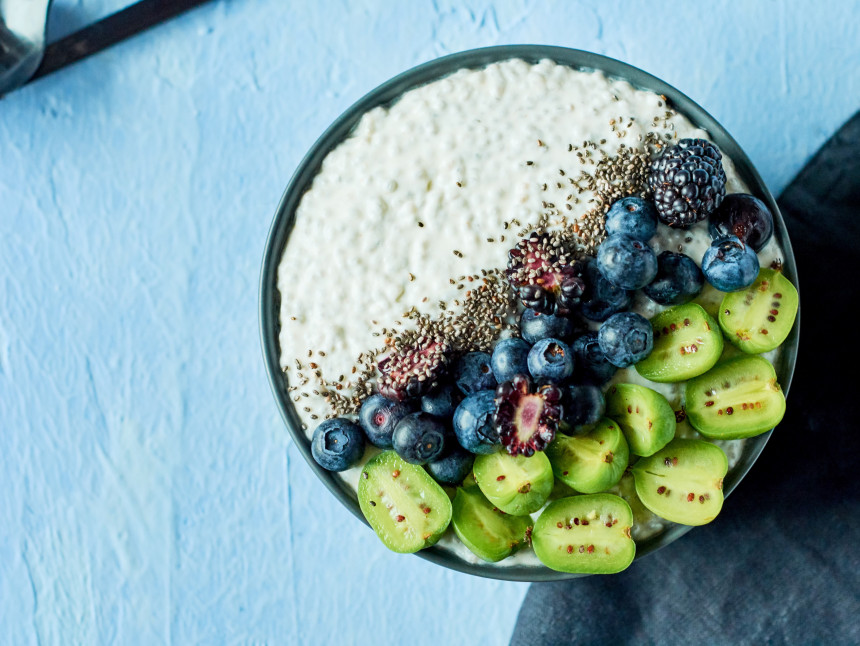 Sajauciet pienu ar jogurtu un medu. Maisījumam pievienojiet čia sēklas, samaisiet ar karoti. Lieciet visu ledusskapī vismaz uz 2 stundām (labāk uz nakti), lai sēklas kārtīgi uzbriest. Ja vēlaties, lai pudiņam ir šķidrāka konsistence, pirms pasniegšanas tam piejauciet vēl nedaudz jogurta vai piena. Pasniedziet, rotājot ar ogām!
