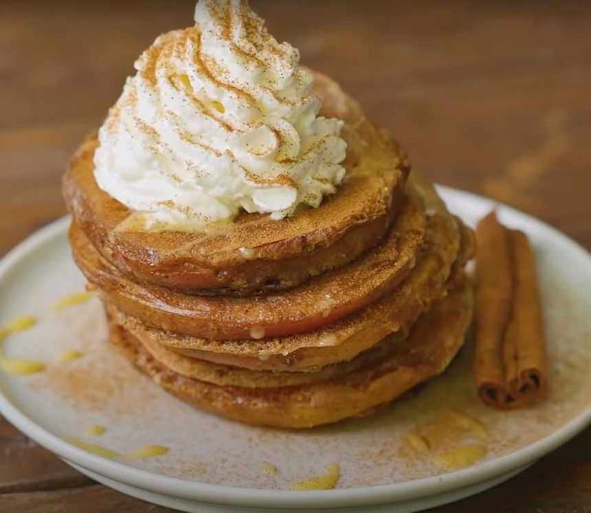 Šādi sagatavotus ābolus vari ēst arī kā pankūkas ar saldo mērci un putukrējumu.