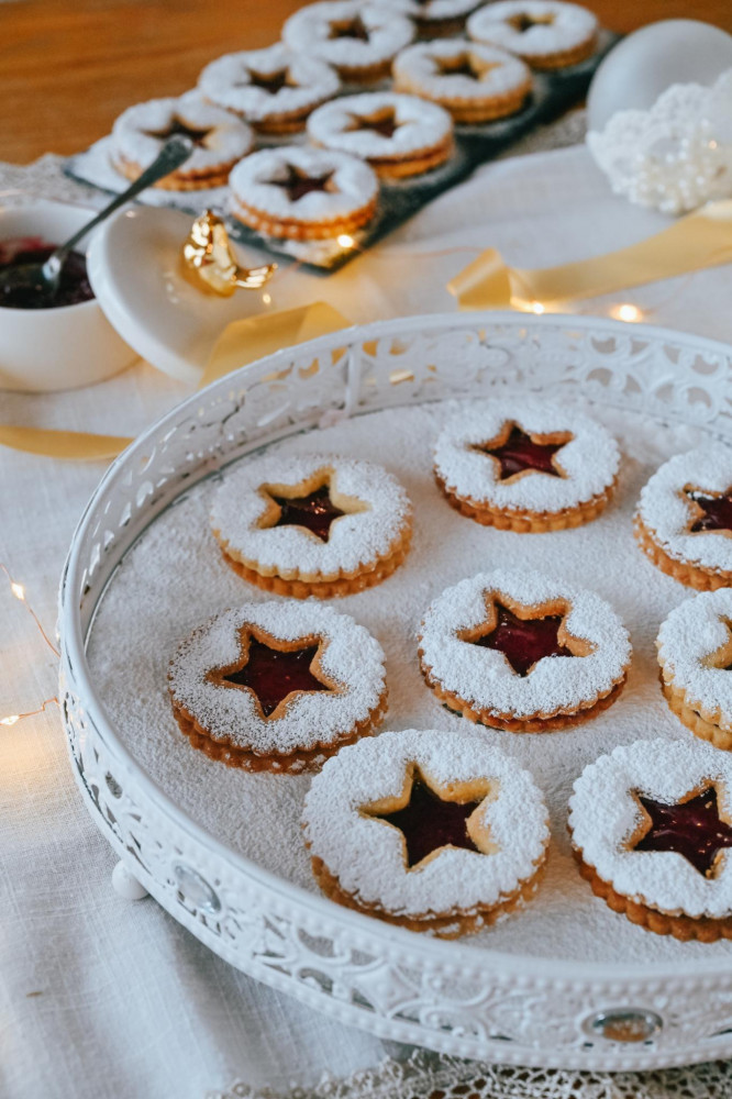Sietiņā ieber pūdercukuru. No cepamā papīra izgriež zvaigznīti, kuru pārliek pāri atsegtajai ievārījuma daļai, kad cepumu apkaisa ar pūdercukuru. Visus cepumus apkaisa ar pūdercukuru un pasniedz.