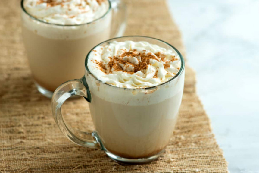 Sajauciet kopā kafiju ar ķirbju pienu un pa virsu uzlieciet putukrējumu, mazliet uzkaisiet virsū garšvielu maisījumu.