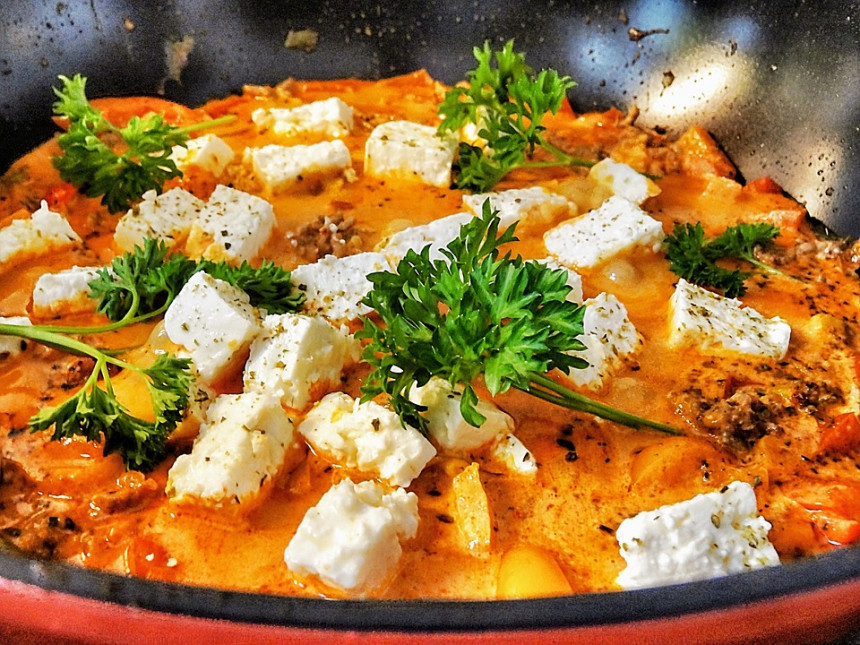 Cūkgaļas maltā gaļa ar sieru un sīpolu garoziņu izdodas ļoti sulīga un apetītelīga.