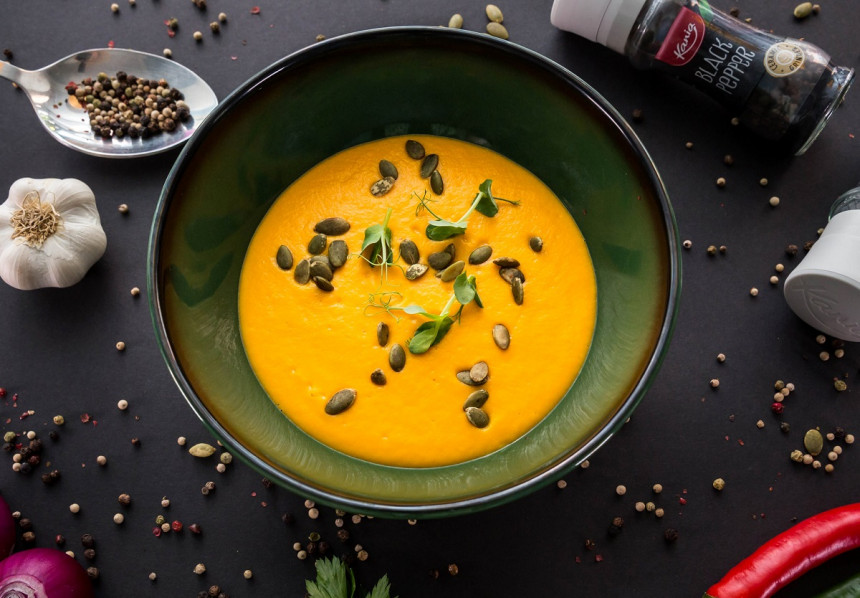 Ķirbju biezzupām katram pavāram ir sava recepte un savi knifi, kā zupu piepildīt ar garšu un sātīgumu. Šefpavārs Artis Upners no “H2O Banketi” piedāvā recepti viegli pagatavojamai un gardai ķirbju, burkānu, ingvera krēmzupai ar ķirbju sēklām.