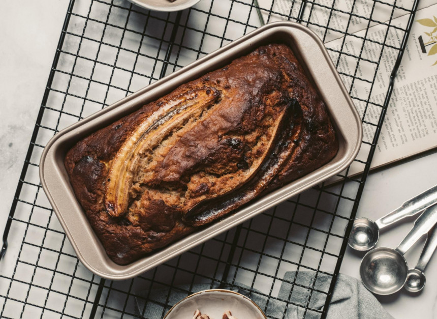 Pavāre un uztura speciāliste Jevgēnija Jansone aicina izmēģināt vegānisko banānmaizi.
