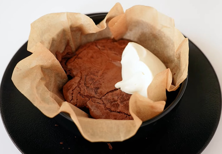- Sadali mīklu iepriekš sagatavotajos trauciņos. Neliec gluži pilnu trauciņu, jo braunijs cepšanas laikā pacelsies. Cep iepriekš sakarsētā cepeškrāsnī apmēram 15-20 minūtes, līdz brauniji ir nedaudz pacēlušies. Pasniedz karstus vai istabas temperatūrā, vari papildināt ar saldējumu vai putukrējumu.