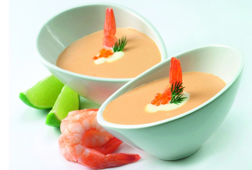 5. Krēmzupā pasniedzot liek tīģergarneles un pasniedz kopā ar grauzdiņu maizi.