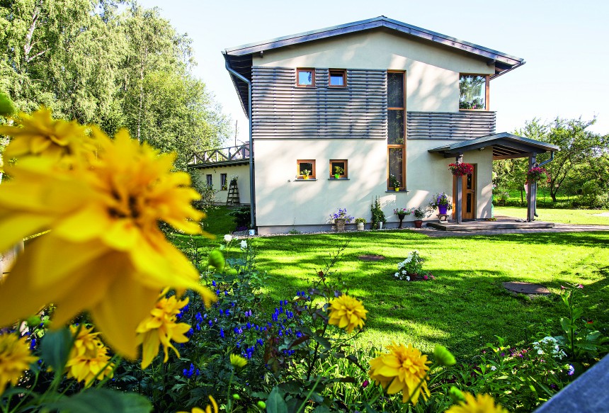 Māju projektējot, Ozoliņiem iepatikās arhitektes piedāvātās platās āra palodzes. Tolaik nevienam pat prātā neienāca, ka vecmāmiņa Dzintra Zumenta tās pratīs pārvērst neparastās puķu dobēs, kurās katru dienu zied kas cits. Saimniece Zanda smejas, mājās pārbraucot, nekad nevari zināt, kas uz kuras palodzes ziedēs.