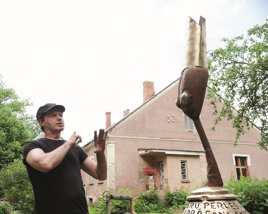 Interesi par mākslu, kā noprotams, rosinājusi mamma. «Negribēju armijā iet, gribēju mācīties ādas apstrādi. Bet skolā netiku iekšā, jo nezināju, kā jāzīmē. Kaut kāds amats bija jāmācās – sāku ar kalšanu. Tā kā negribēju neko normālu strādāt, kādu svečturīti uztaisīju, un tā sākās. Atklāju, ka metālu var sagriezt gabaliņos un uztaisīt bumbiņas. Tad amats bija rokā,» metālmākslinieks it kā joko, it kā ne. Ne viņš skolās apguvis zināšanas, nekā, bet i metāla zirgu dabiskā augumā, i briedi uzmetinājis. Un par «bumbiņām», kad grib būt nopietnāks, saka – lode simbolizē mūžību un nepārtrauktību.