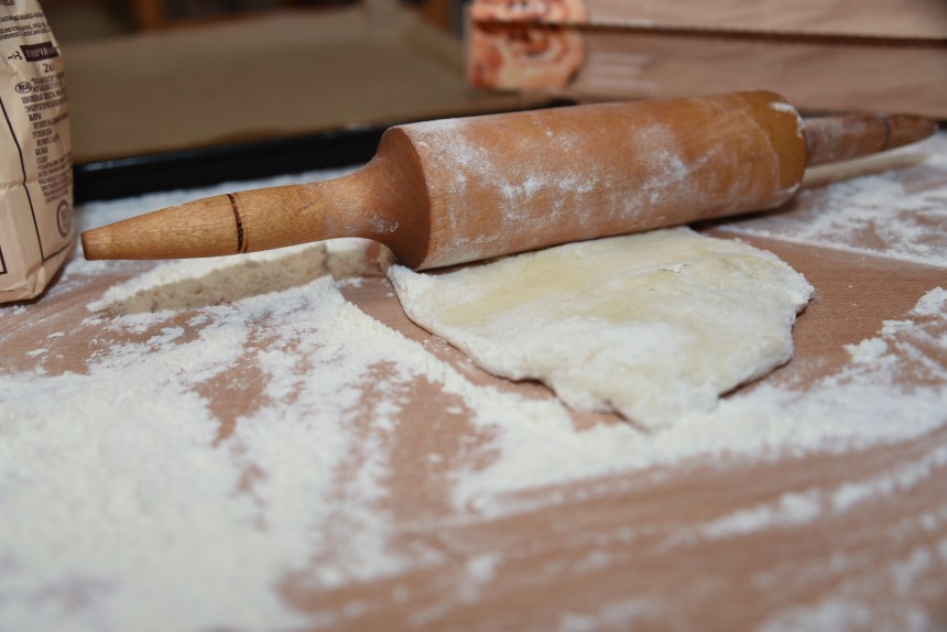 - Mīklu sadala 2-3 daļās. Uz miltiem nokaisītas virsmas katru daļu atsevišķi izrullē.