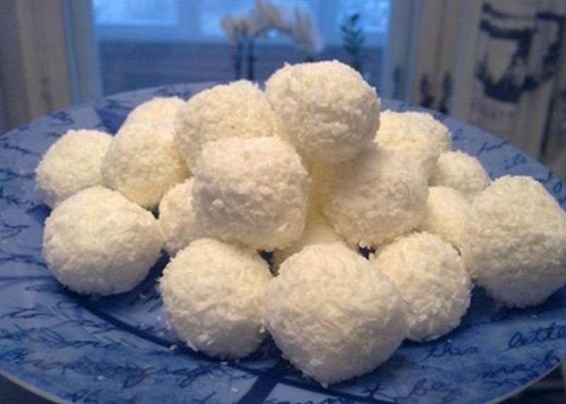 Tālāk seko pieci pagatavošanas soļi.Biezpienu samīca, tostarp samaisa visas sastāvdaļas.No biezpiena masas izveido tējkarotes lieluma bumbiņas.Bumbiņas vidū liek grauzdētu mandeli.Bumbiņas apviļā kokosriekstu skaidiņās.Apviļātās bumbiņas liek ledusskapī, vismaz uz 1 stundu, informē gardedis.lv.