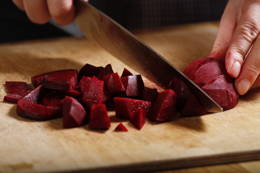 PAGATAVOŠANA: Izvāra un atdzesē sēnes. Bietēm izdobj vidu. Gaļasmašīnā samaļ sēnes, biešu vidiņus un sīpolu, pievieno sāli, piparus un samaisa. Izdobtās bietes liek uz plāts, kas izklāta ar foliju, blīvi piepilda ar sagatavoto masu, katrai uzlej tējkaroti saldā krējuma un uzkaisa ēdamkaroti rīvēta siera. Liek iesildītā cepeškrāsnī un cep 20 minūtes. Uzmanīgi pārvieto uz šķīvjiem, uzkaisa pētersīļu zaļumus.