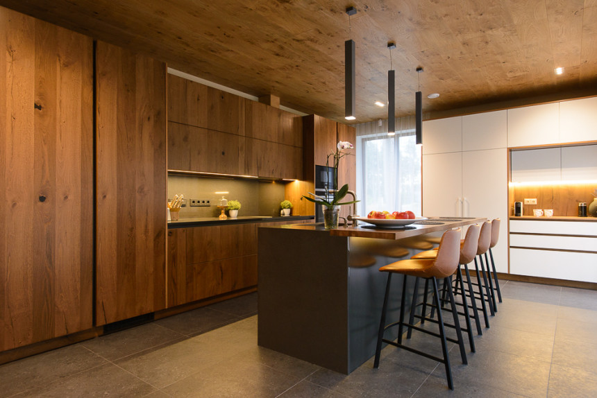 Īpašu mājīgumu un siltuma sajūtu telpām piešķir dabīgie materiāli, turklāt tie izmantojami ne vien lielu virsmu - sienu vai grīdas - apdarē, bet arī mazākās virsmās - sākot ar koka leti, beidzot ar skapīšu rokturiem vai gaismas ķermeņiem. Koks visā tā toņu un faktūru bagātībā, joprojām aktuālā vecas koksnes izmantošana interjerā, ērti lietojamais saplāksnis vai pat dabīgo materiālu imitācijas - ļaujieties eksperimentiem, radot savu ideālo virtuvi.