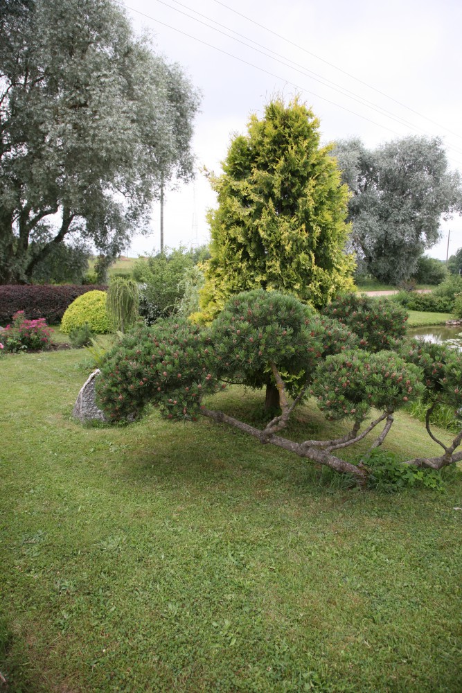 Saimniece neslēpj, ka lielākais palīgs dārza ierīkošanā ir vīrs Uldis: gan laukakmeņus dīķmalai pa ledu vilcis, gan atbalsta mūrīšus un vārtu stabus darinājis. Arī visi metāla darbi ir viņa rokām paveikti. Šteinbergiem sakrīt gaumes arī dārza veidošanā. Ināra pasmaida: "Stādījumu veidošanā mums abiem patīk konkrētas līnijas." Visizteiktāk tas redzams mājas priekšā, kur precīzi apcirptie bukši ieskauj rožu stādījumus kā Rundāles pilī. Abpus ieejai kā zelta zvaigznītes sakritušas sīkrozītes kalibras. Arī dīķis akurāti veidots, vien paplatināts ceļa pusē, kur iecerēts ūdensrozēm vaļu ļaut. Šim Lielcieceres dārzam drīz būs divdesmitā vasara. Pa šiem gadiem tas nemanāmi sadalījies vairākās striktās zonās: priekšdārzs gar ceļmalu, ziedu un vīnogu karaliste, un aizšķūnijā paslēpusies dažnedažādu koku valstība, kur vienuviet šalko deviņu bērzu birze, debesīs slejas Ināras stādītā kļava, savu īsto vietu pasaku dārzā beidzot atradis arī riekstu koks. Koku audzē visskaistāk esot vakarpusē, kad saule laužas cauri dažnedažādu kļavu lapām. Protams, kā jau laukos, netrūkst arī kārtīgas siltumnīcas un dārzeņu vagu priekšdārzā. Daudzkrāsaino ūdensrožu mieru apsargā cēlās kannas. Saimniece gan nopūšas, sak", kādas divdesmit šķirnes vien palikušas, savulaik bijušas pat trīsdesmit! Neparastais sēžamais pretējā krastā iesaukts par dzejnieku soliņu, – tam atzveltnes un paroceņu vietā dekoratīvi cirpti ligustri. Romantiskas izjūtas raisa arī daudzie purpurkrāsas koki un augi. Viena sarkanā Kaukāza plūmīte pārvērtusies lidojošajā šķīvītī, cita – ideālā bumbā, šķiet, nupat Lutausis to gaisā pametis. Pret rudeni saimniekus cienās purpura ābelītes... Arī sapnis Šteinbergiem ir purpura – meita Polijā nolūkojusi vīnogas bordo krāsas lapām, atliek vien sameklēt audzētāju.