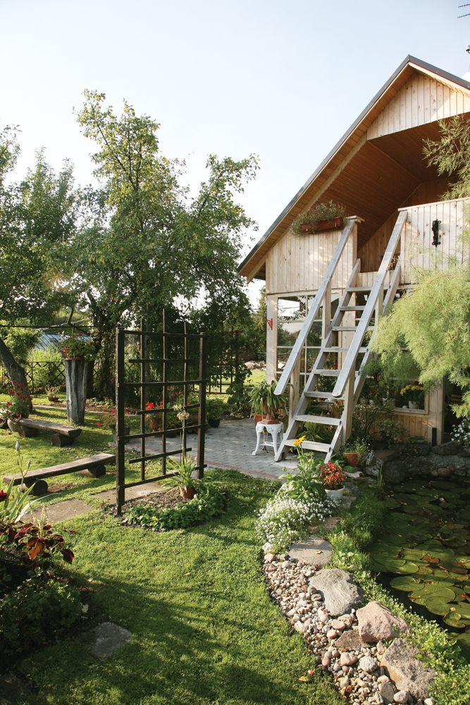 Saimniece nopūšas: "Šogad mans dārzs ir bēdīgs, jo visu vasaru saimniece bija uz gultas. Prieks, ka abi mani Mārtiņi (vīrs un jaunākais dēls) lieliski ar visu tikuši galā, gan mauriņš kopts, gan kurmji ķerti. Es ļoti mīlu savu dārzu, labi jūtos starp savām puķēm. Mums abiem ar vīru dārzs ir sirdslieta. Ja esmu kādu puķi noskatījusi, es viņu dabūju. Tagad mēs ilgojamies pie žoga sastādīt potētos ceriņus. Divu toņu violetie jau ir. Kāzinieki uzdāvināja baltu potēto, sapnis ir vēl dabūt rozā. Pie mums kāzinieki ir bieži viesi. Vispirms viņi sarakstās pilsētas domē, tad pilī nodejo valsi un klāt ir, lai fotografētos un dzertu šampanieti."
